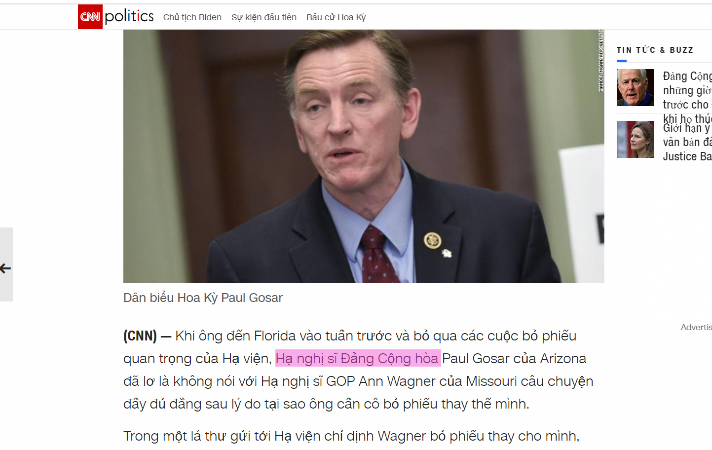 (CNN)Khi ông đến Florida vào tuần trước và bỏ qua các cuộc bỏ phiếu quan trọng của Hạ viện, Hạ nghị sĩ Đảng Cộng hòa Paul Gosar của Arizona đã lơ là không nói với Hạ nghị sĩ GOP Ann Wagner của Missouri câu chuyện đầy đủ đằng sau lý do tại sao ông cần cô bỏ phiếu thay thế mình.