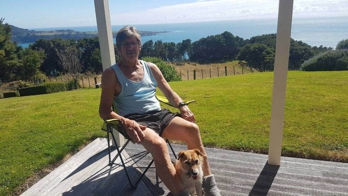 Graeme ngồi sưởi nắng trên hiên nhà cùng chó cưng Monty