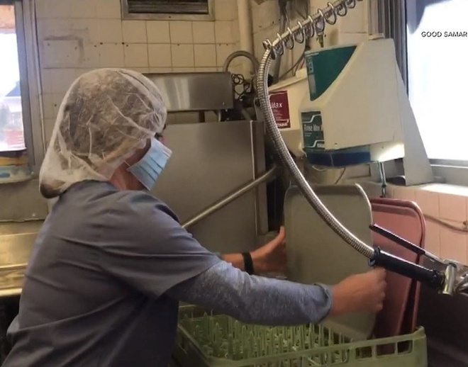Từ tháng 12/2020, vào mỗi buổi tối và 2 ngày cuối tuần, cô làm nhân viên lau sàn, rửa bát đũa trong nhà bếp.