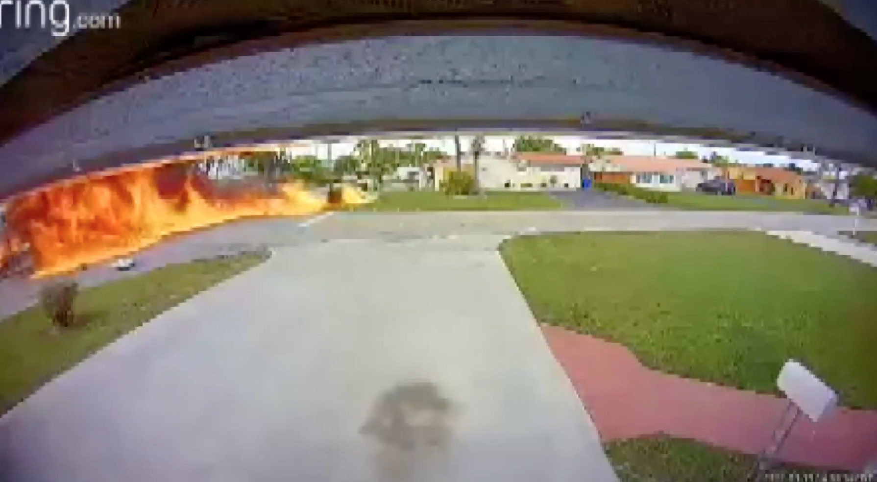 Một đoạn video được quay từ camera an ninh trước cửa một ngôi nhà gần đó đã ghi lại được vụ tai nạn. Đoạn phim cho thấy chiếc phi cơ vào chiếc xe trước khi trượt dài và phát nổ trên đường. Nhà chức trách cho biết đám cháy đã được dập tắt bởi các nhân viên cứu hỏa, trong khi đó tài xế và các hành khách đã được giải cứu. Các viện chức cho biết phi cơ đã va vào một đường dây điện trước khi lao vào chiếc xe.