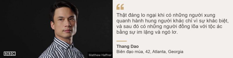 Thang Dao là một nhà biên đạo múa hiện sống tại Atlanta, Georgia, và là người thường xuyên lên tiếng chống nạn kỳ thị chủng tục trên Facebook cá nhân.
