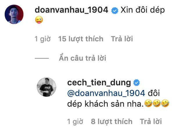 Bức ảnh không chỉ khiến cư dân mạng trầm trồ mà ngay cả đàn em Văn Hậu cũng chú ý. Hậu vệ gốc Thái Bình để lại bình luận đùa giỡn: "Xin đôi dép". Nhiều người cho rằng, Văn Hậu muốn nói đôi dép mà Tiến Dũng đi chưa hợp cho lắm với bối cảnh gồm siêu xe và người đẹp. Tuy nhiên, cầu thủ sinh năm 1997 cho biết đây là đồ của khách sạn. Dường như anh chỉ mang tạm thời vào lúc đó.