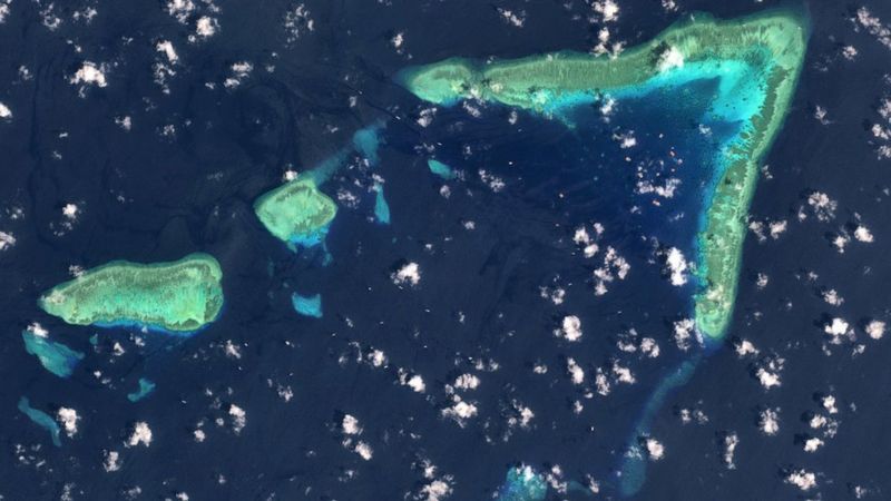 Ảnh chụp từ trên không của đá Ba Đầu, Quần đảo Trường Sa, Biển Đông ngày 19/3/2021. TQ đưa hàng trăm tàu dân quân tới đây hồi tháng 3/2021- một hành động mà VN gọi là 'vi phạm nghiêm trọng chủ quyền của VN'.