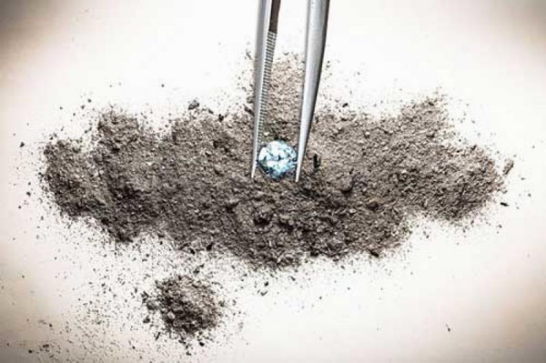The human body is almost entirely composed of four elements: oxygen, hydrogen, nitrogen and carbon. In it, oxygen, hydrogen and nitrogen exist in the gaseous form, so the remains after cremation will contain a huge amount of carbon. The carbon in the remains is then pressed between two heat plates at a high temperature in the laboratory and it turns into diamonds. This is like a clam making layers of pearls.