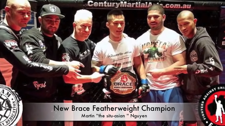 “Có một giải đấu mang tên BRACE MMA ở Sydney và nhà vô địch hạng Featherweight, tôi nhớ là Nick Honstein, anh ấy đã chuyển về Mỹ và không thể bảo vệ danh hiệu vô địch. Vì thế chúng tôi (Martin và một võ sĩ khác) đã được sắp xếp để so tài nhằm tranh chiếc đai vô chủ", Martin Nguyễn kể lại trong podcast với MMA Sucka.