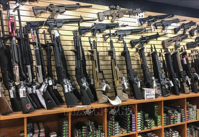 Các loại súng bán tự động được bày bán tại cửa hàng ở Las Vegas, bang Nevada, Mỹ. Ảnh: AFP/TTXVN