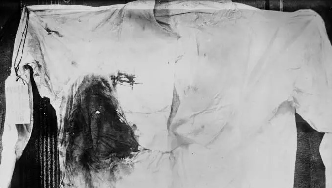 Vết máu loang trên chiếc áo sơ mi mà ông Roosevelt mặc khi bị bắn. Ảnh: Getty