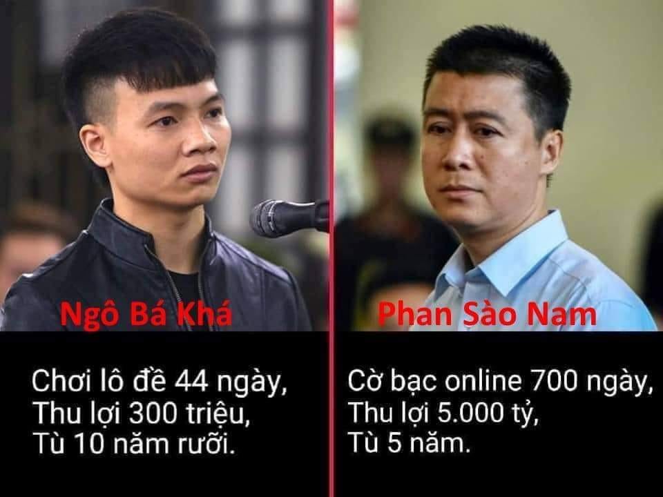 Bản án của Toà án Cộng sản tỉnh Quảng Ninh khiến dư luận vừa thấy bi hài, vừa thấy bất mãn khi so sánh với bản án của bị can Ngô Bá Khá. Khá bị bắt cũng với tội danh nằm trong đường dây tổ chức đánh bạc nhưng với cấp độ nhỏ hơn Phan Sào Nam rất nhiều. Tuy nhiên, mức án mà Khá bị Toà Cộng sản tuyên phạt là 10 năm 6 tháng tù giam.