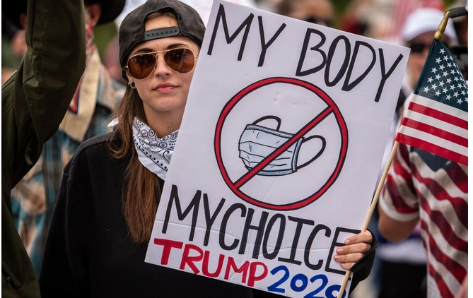 Nhiều người ở những địa phương nói trên cho rằng lệnh bắt đeo khẩu trang là xâm phạm tới quyền tự do cá nhân. Đây đồng thời chính là quan điểm được cựu Tổng thống Mỹ Donald Trump ủng hộ.
