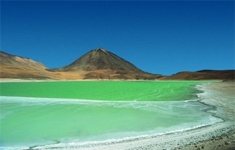 Đầm phá ở Bolivia: Là một hồ nước tuyệt đẹp được bao quanh bởi những triền đồi và những dãy núi, đầm phá ở Bolivia thay đổi màu sắc từ xanh da trời tới xanh ngọc và xanh thẫm.