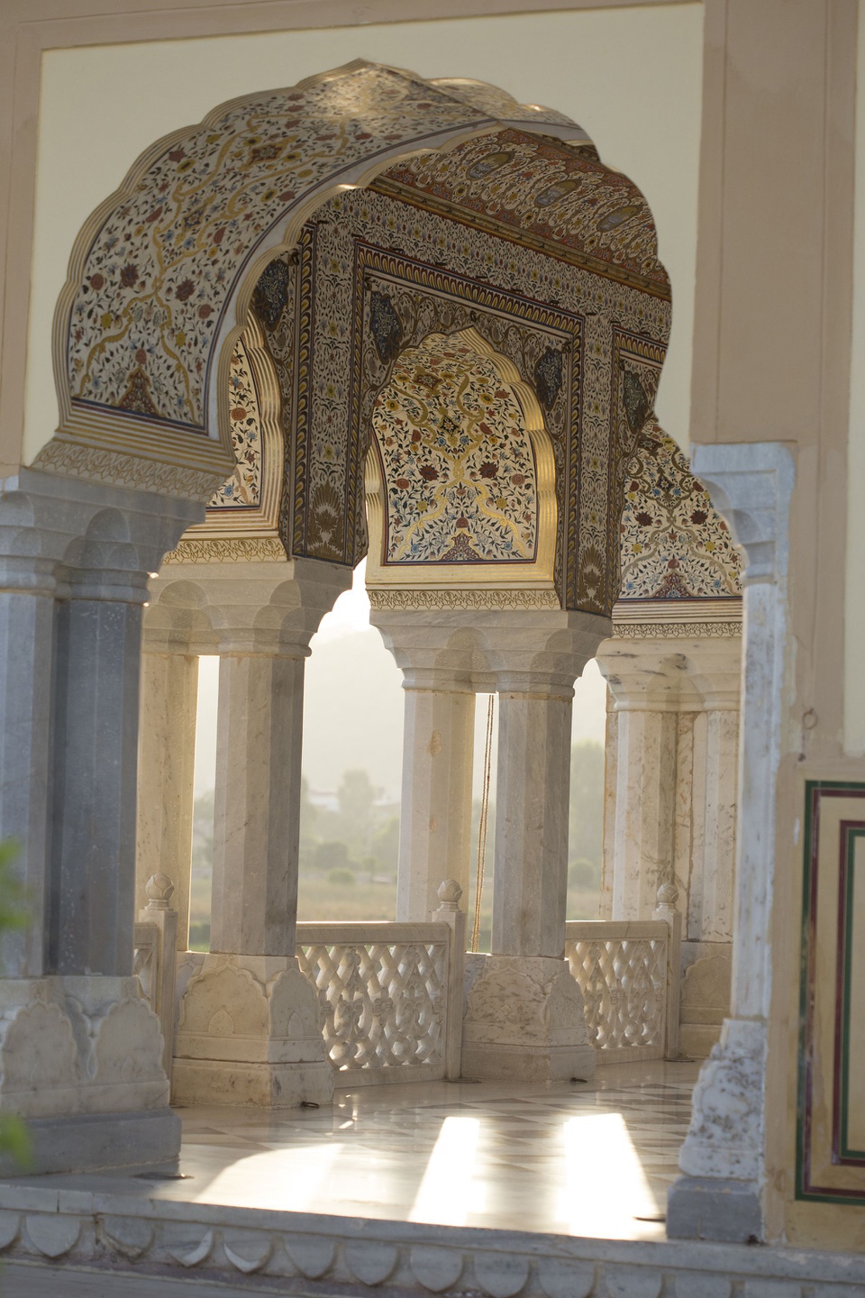 Jal Mahal (Jaipur, Ấn Độ): Nằm giữa hồ Man Sagar, Jal Mahal giống như truyện cổ tích có thực. Vào buổi tối hay những đêm trăng, tòa lâu đài trắng lộng lẫy phản chiếu trên mặt nước, tạo khung cảnh siêu thực cho những vị khách nghỉ tại đây. Điều thú vị là phía dưới cung điện này còn có 4 tầng bí mật, cũng đẹp không kém kỳ quan kiến trúc phía trên. Ảnh: Pinterest.