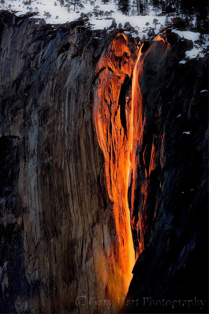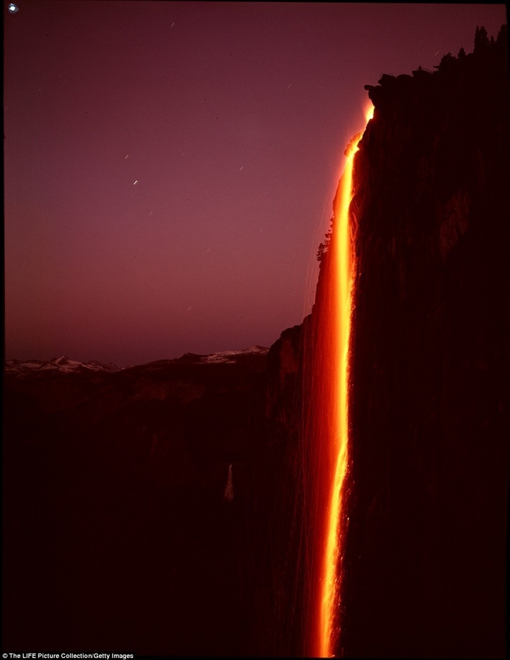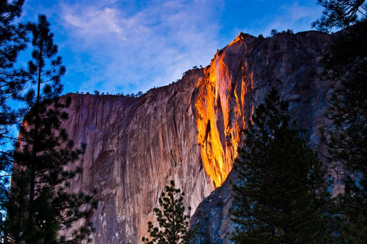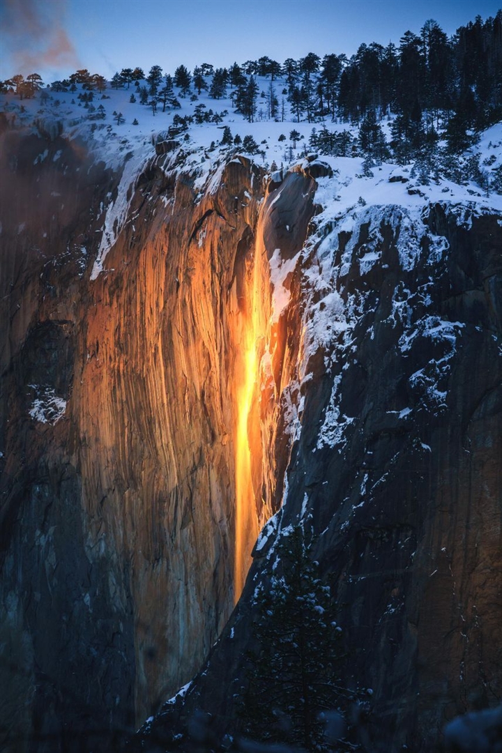 Thác Horsetail nằm ở Công viên quốc gia Yosemite ở California, nước Mỹ, hay còn được gọi với cái tên “Thác lửa”, là một trong những cảnh tượng tuуệt vời nhất của tự nhiên. Nhìn từ xa, thác nước Horsetail như đang đổ từng dòng nham thạch xuống chân núi. Thực chất, khi hoàng hôn buông xuống, mặt trời chiếu rọi vào dòng nước đổ xuống vách đá, tạo nên màu đỏ rực cháy do hiện tượng khúc xạ ánh sáng.