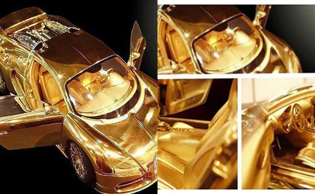 Chiếc siêu xe mô hình Bugatti Veyron Diamond này được làm bằng vàng ròng 24 carat, ngoài ra xe còn được trang bị khối động cơ 16 xylanh “W, sinh ra công suất 254mph.