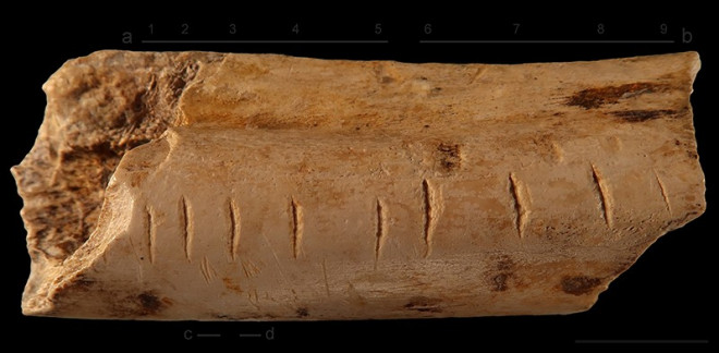 Mẩu xương linh cẩu cho thấy loài người tuyệt chủng Neanderthals thực ra đã biết đếm số - Ảnh: Francesco d’Errico/Natute