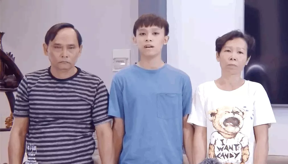 Cuối clip, gia đình Hồ Văn Cường cúi đầu xin lỗi không hề tự nhiên. Ánh mắt bố của Hồ Văn Cường liên tục nhìn sang phía phải, còn mẹ của giọng ca nhí người cứng đơ trễ nhịp đầy gượng gạo