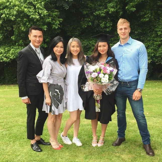 Gia đ́nh nam diễn viên tại lễ tốt nghiệp của con gái lớn tên Phong Hinh
