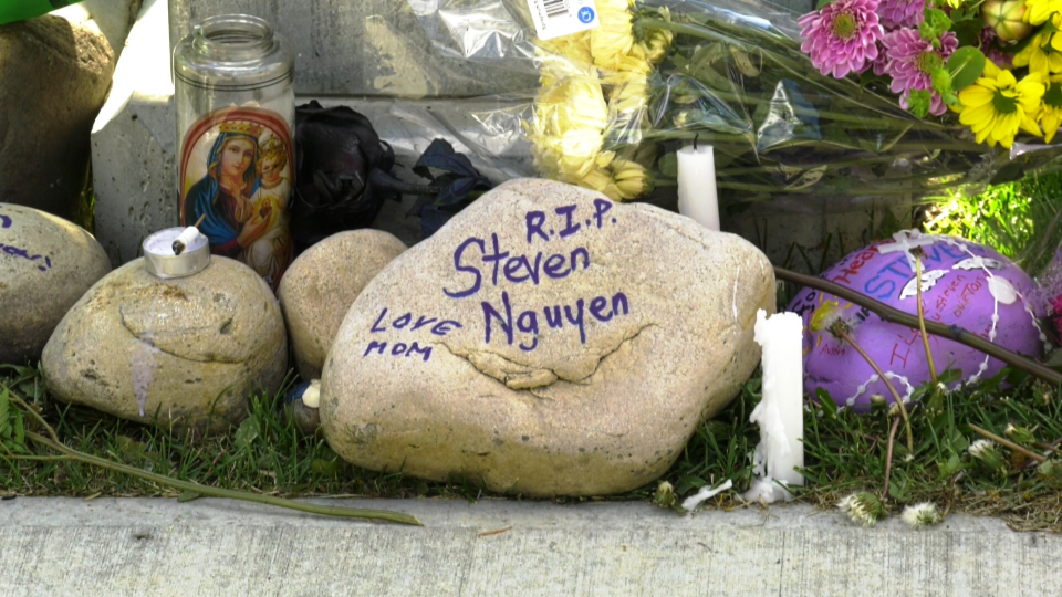 Hình ảnh Steven Nguyễn tại nơi tưởng niệm. (Global News)