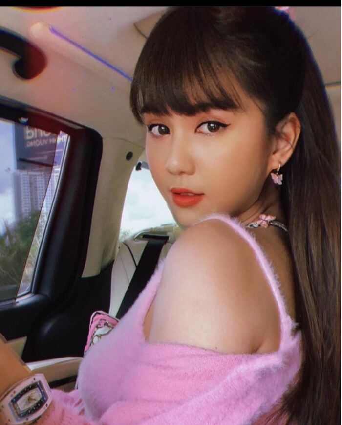 Lâu lâu, nữ hoàng nội y Ngọc Trinh rũ bỏ hình tượng gợi cảm chuyển sang visual dễ thương khiến các fan cứ một phen mê mẩn. Hình ảnh mới nhất của chân dài 8x trong kiểu tóc mái ngang cùng trang phục màu hường ngọt ngào trông xinh ơi là xinh.