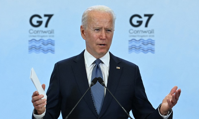 "Tôi cam kết rằng chúng tôi sẽ trả tiền và đóng góp nửa tỷ liều vaccine Pfizer, bên cạnh số tiền chúng tôi cung cấp cho dự án Covid. Tôi biết mọi người đều đã nghe tới nó, nhưng rất nhiều người có thể không biết Covid là gì. Đó là cơ chế cung cấp vốn để các nước có thể tiếp cận vaccine", Tổng thống Mỹ Joe Biden nói trong cuộc họp báo sau hội nghị thượng đỉnh G7 hôm 13/6.