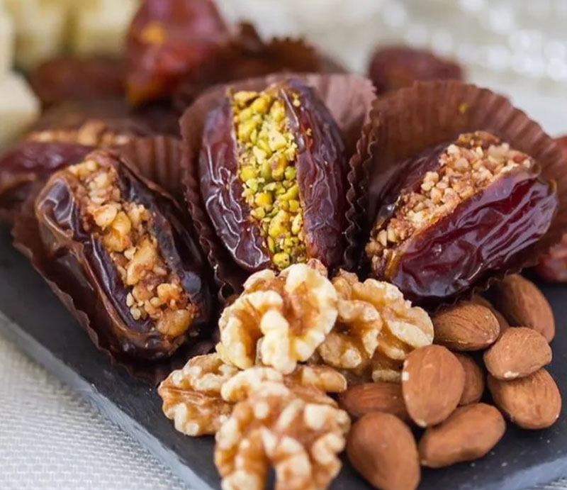 Chà là là loại quả phổ biến ở UAE, nó thường được sấy khô và sử dụng cùng với nhiều thực phẩm khác. Tại UAE, hạnh nhân, quả hồ trăn và nhiều loại hạt khác được nghiền vụn rồi nhét vào ở giữa quả chà là, tạo nên một món ăn vặt rất hấp dẫn.