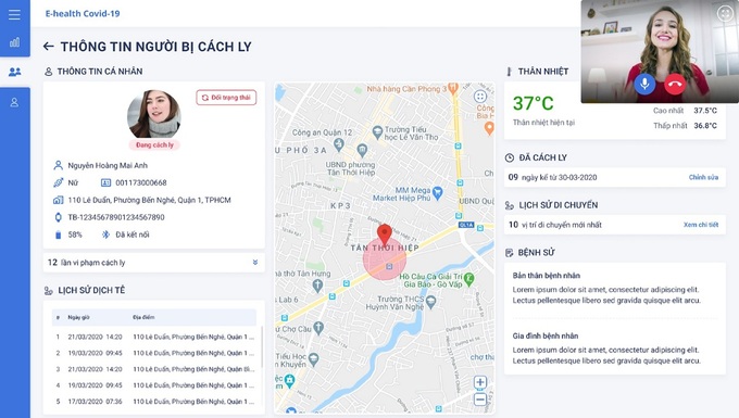 Phần mềm được nhóm kỹ sư phát triển trong 3 tháng, giúp người quản lý theo dõi vị trí, nhiệt độ của người cách ly theo thời gian thực.