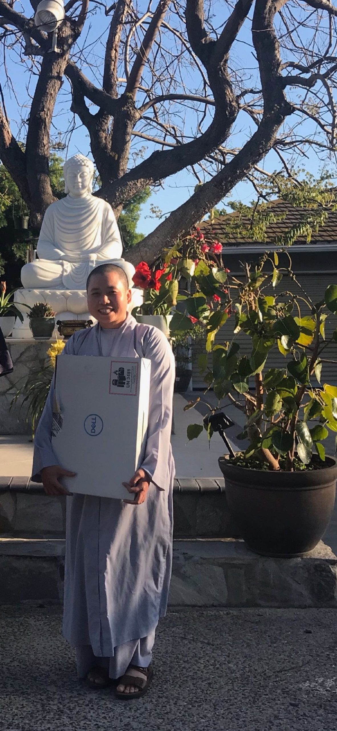 “Sư cô Tuệ Hương đang học ở Santa Ana mà máy bị hư. Sư cô nhắn cho tôi. Tôi nghĩ: Con của Phật mà kêu mình thì không thể từ chối. Thế là tôi lo cho sư cô một cái máy. Máy mới luôn nhe. Sư cô mừng lắm,” ông Nhã kể.