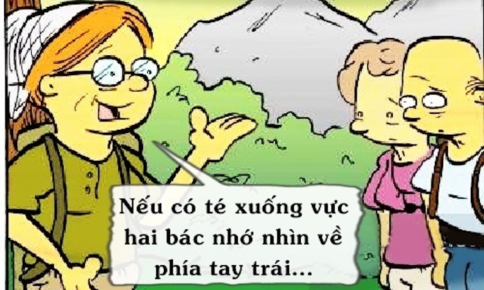 - Này anh hướng dẫn viên, đi như vậy có nguy hiểm lắm không khi ngay bên cạnh chúng ta là vực sâu?