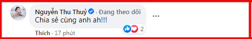 Đạo diễn Hoàng Nhật Nam bộc bạch: "Biết tin không thể kìm được lòng mình chùng xuống. Nhưng mong hai anh chị vẫn mãi là tri kỉ. Hạnh phúc rồi sẽ đến với cả hai". Ca sĩ Thu Thủy: "Chia sẻ cùng anh".