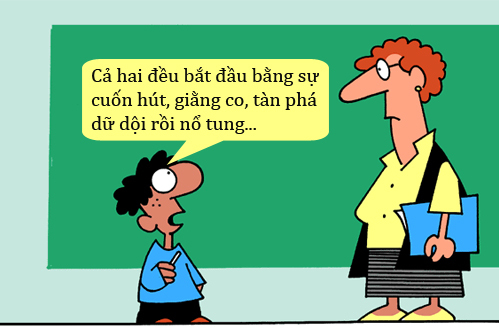 - Thưa cô, bởi vì cả hai đều bắt đầu bằng sự cuốn hút, giằng co, tàn phá dữ dội rồi nổ tung.