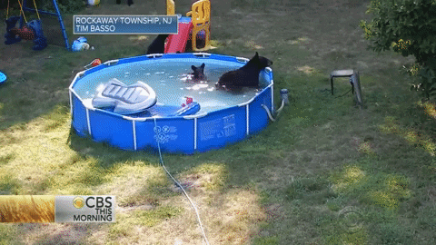 Mới chỉ liếc mắt đi một lúc, khi quay lại, họ kinh hãi khi phát hiện ra chiếc bể bơi hơi đã bị "chiếm dụng" bởi những vị khách không mời bốn chân. Càng đáng sợ hơn, khi những vị khách này là một gia đình gấu đen, đang thỏa chí vùng vẫy trong bể nước.