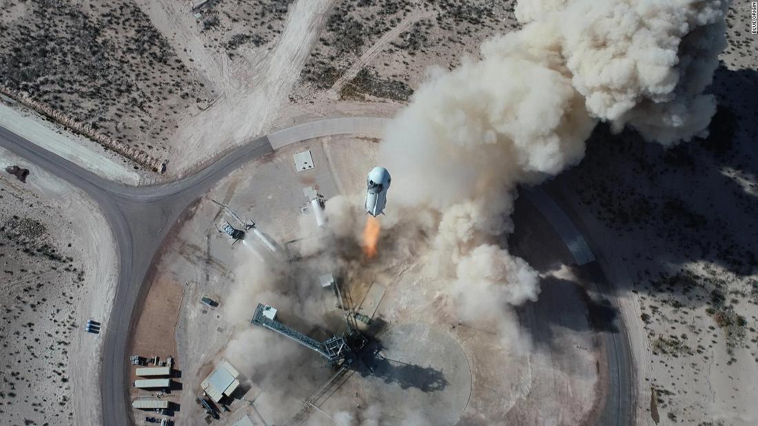 Đây là lần đầu tiên tàu vũ trụ New Shepard, do công ty Blue Origin của tỉ phú Bezos chế tạo, thực hiện thành công chuyến bay chở người vào vũ trụ, theo CNN.
