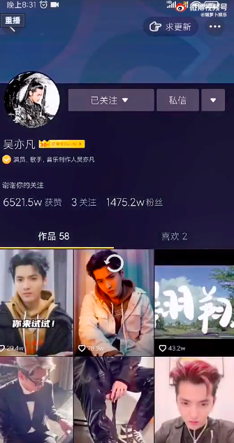 Tin nhắn tục tĩu thể hiện sự cay cú của Ngô Diệc Phàm. Khi ấn tài khoản sẽ hiện ra loạt clip cùng số lượng follower lên tới 65,2 triệu
