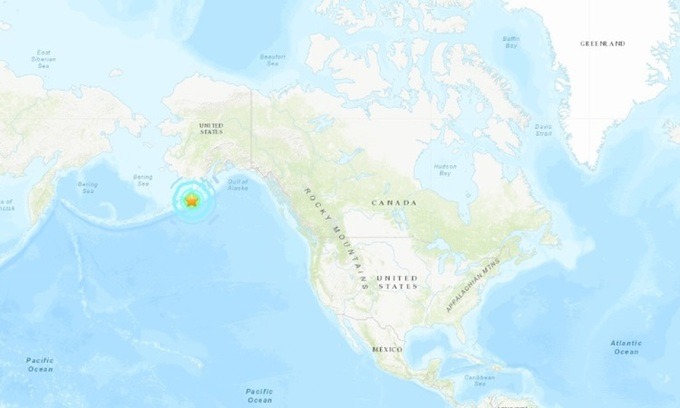 Vị trí xảy ra động đất ngoài khơi bang Alaska của Mỹ. Đồ họa: USGS.
