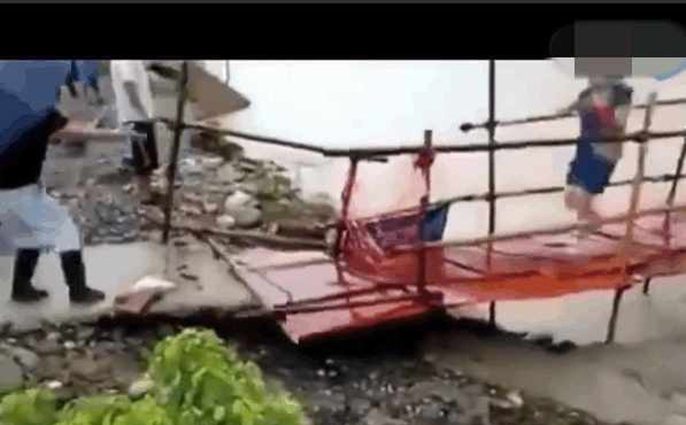 Theo lời kể lại của người này, trong đợt mưa lũ vừa qua, có một hôm vì phải đi ra ngoài mua đồ nên chị đành bất chấp nguy hiểm mà đi qua một câu cầu gỗ được dựng tạm bợ để sang bên kia sông.