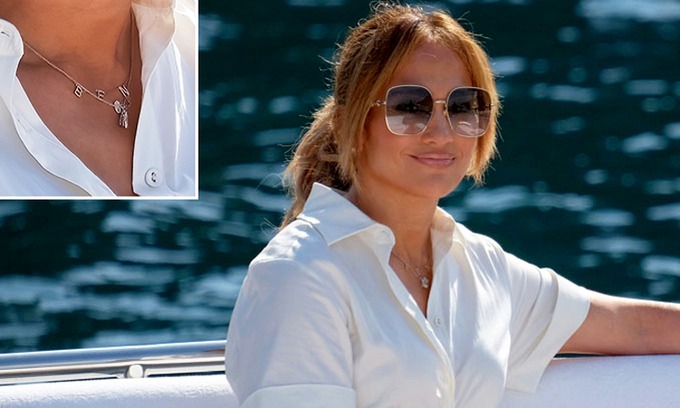 Jennifer Lopez đeo vòng cổ có tên bạn trai. Ảnh: Mega.