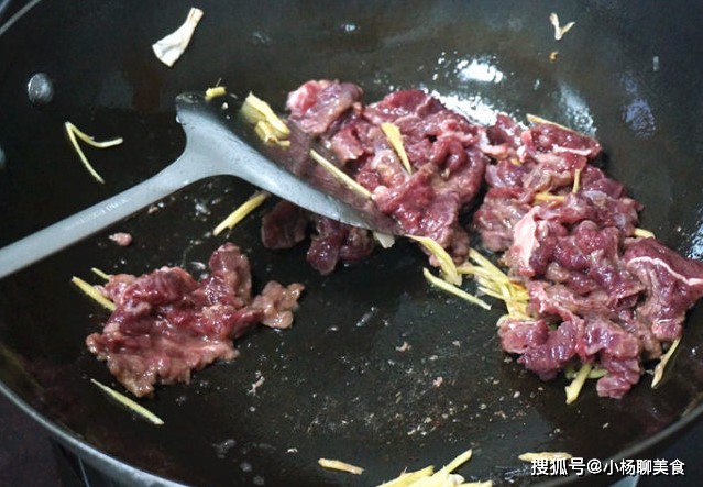 Khi ướp thịt bò cần cho tinh bột, muối, dầu ăn vào đảo đều, ướp trong vòng 15 phút. Sau khi ướp thịt bò xong, bạn bắc nồi lên đun nóng dầu, cho một lượng gừng băm vừa đủ rồi cho thịt bò đã ướp vào xào sơ qua.