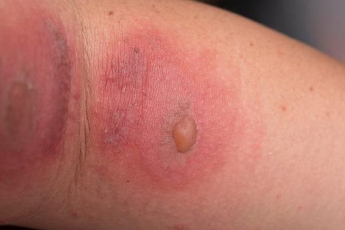 Da bị tổn thương do tiếp xúc với dịch cơ thể kiến ba khoang có chứa độc tố Pederin