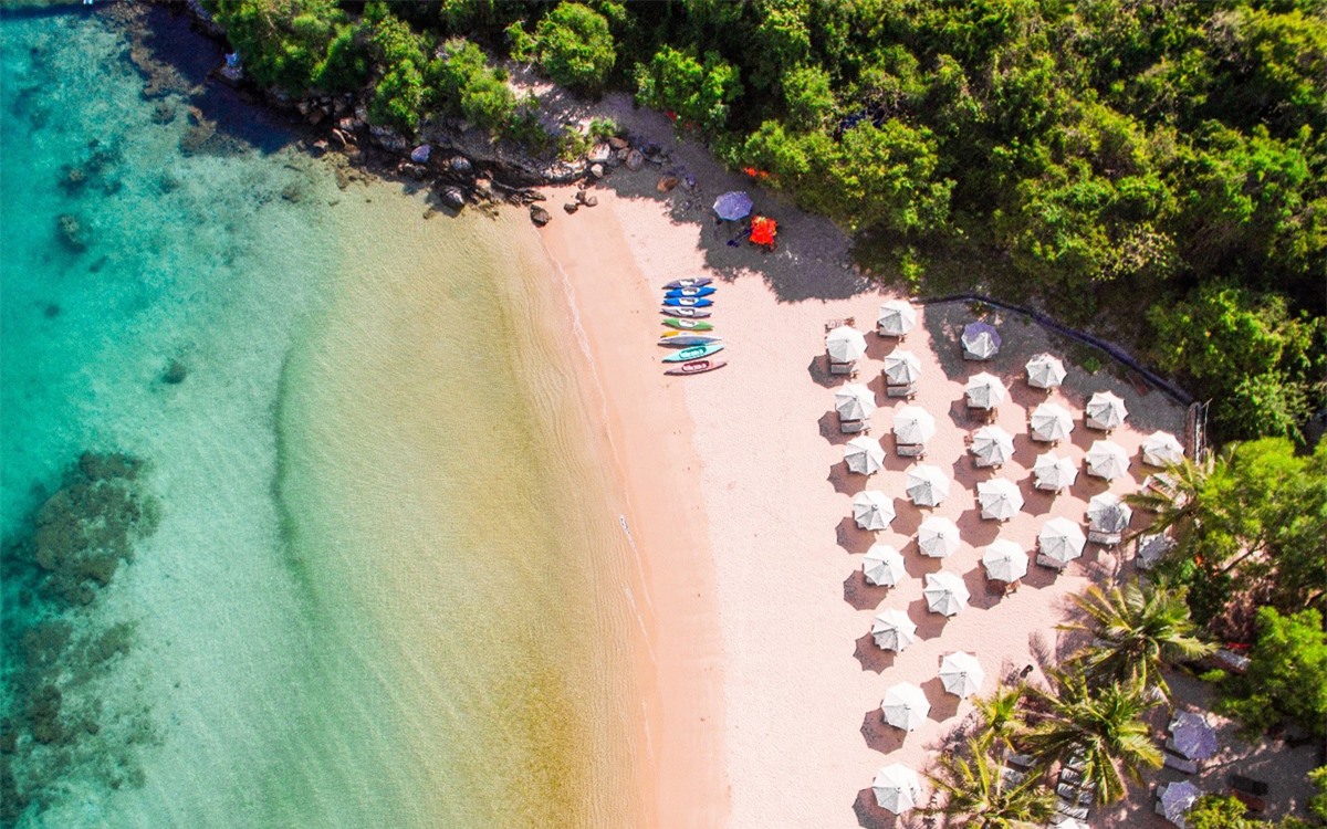 Bạn sẽ được thư giãn đúng nghĩa giữa không gian thiên nhiên tách biệt. “Sạc đầy cảm xúc” khi đặt chân lên bãi cát trắng mịn trải dài, đắm mình trong làn nước trong xanh với không khí trong lành trên đảo.