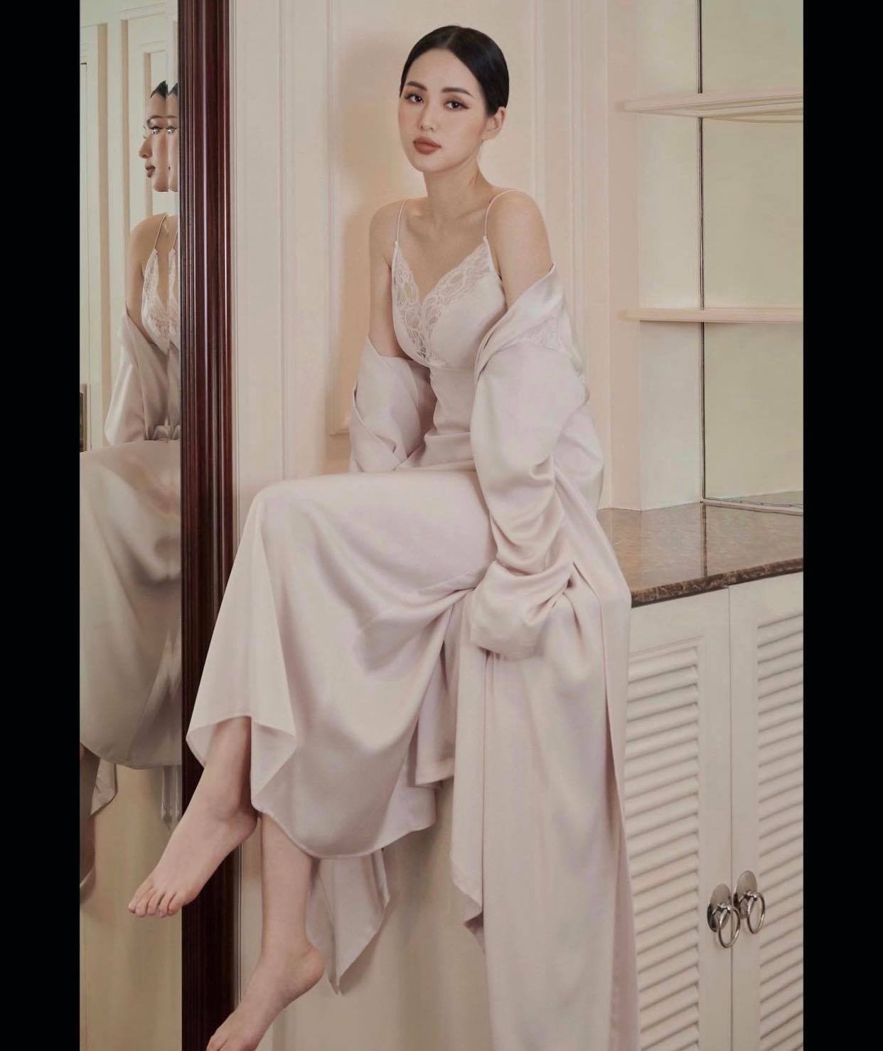Đa phần, người đẹp đều lựa chọn váy lụa có độ ôm vừa phải kết hợp chất liệu dày dặn, đơn giản nhưng vẫn làm nổi bật đường cong nữ tính.