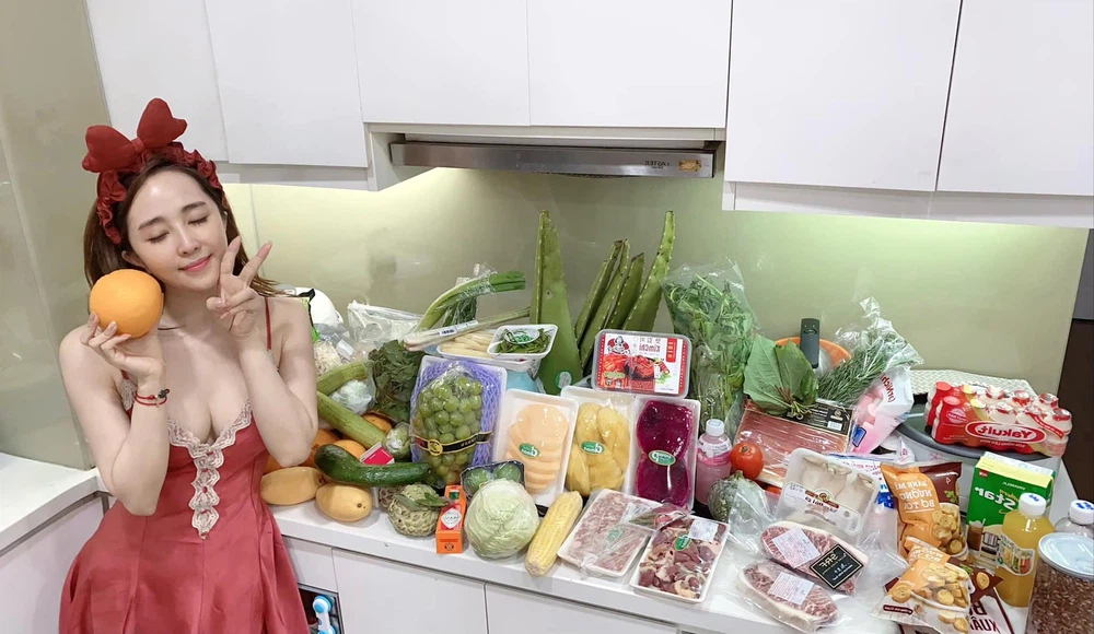 "Cho mấy em cá ở nhà ăn. Sắp to hơn mình đến nơi rồi", Quỳnh Nga viết.