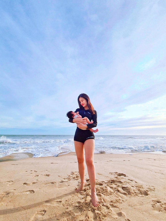 Song chỉ sau 1 tháng sau khi sinh con, bà xã của Khắc Việt nhanh chóng khôi phục thể hình hoàn hảo. Sắc vóc của "bà mẹ 2 con" hiện cực kỳ chuẩn đét và thon gọn.