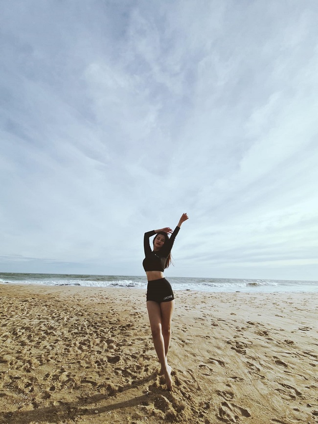 Cụ thể trong nhiều bức hình chụp toàn thân, vóc dáng của giọng ca sinh năm 1988 rất thon gọn, không hề có dấu hiệu sồ sề như nhiều chị em gặp phải.