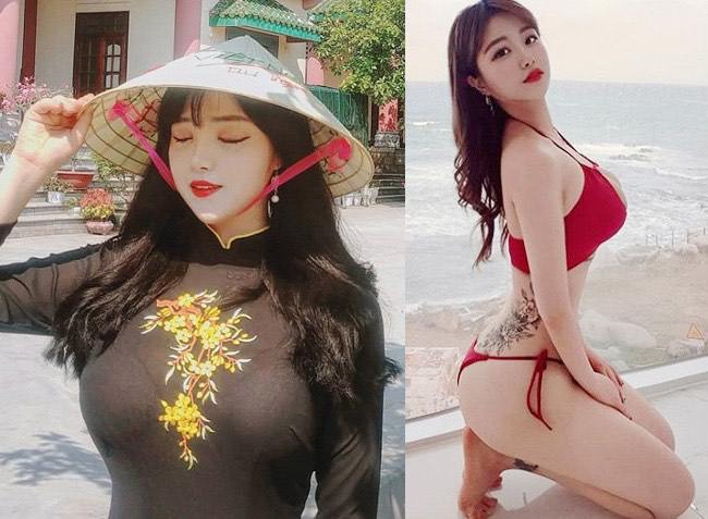 Ngay cả khi tới Việt Nam, mỹ nhân Hàn Quốc vẫn lăng xê mốt khoe áo ngực khi mặc áo dài mỏng manh.