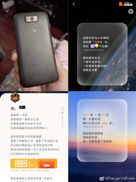 Trên mạng xã hội Weibo, những người dùng thế hệ đầu tiên của Xiaomi, thuộc mọi tầng lớp xã hội, đã đăng hình ảnh chia sẻ những phong bao lì xì của riêng họ. Nhiều người nói rằng họ chưa bao giờ nghĩ rằng Xiaomi sẽ trả lại khoản tiền mua sản phẩm cho mình, thậm chí cả sau 10 năm nữa. Vô số lời chúc có cánh đã được gửi tới Lôi Quân và chúc cho mô hình kinh doanh của Xiaomi ngày càng phát triển.