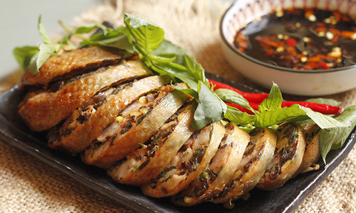 Trình bày và thưởng thức: Để nguội rồi cắt dồi cổ vịt thành khoanh tròn, bày ra đĩa thưởng thức.