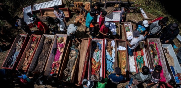 Bộ lạc Toraja - sinh sống trong một thung lũng đẹp như tranh vẽ Londa, nằm cách trung tâm tỉnh Sulawesi, Indonesia 300km về phía nam đảo Sulawesi. Tại đây, người dân có truyền thống ướp xác người đã khuất và sống cùng xác ướp trong thời gian dài.
