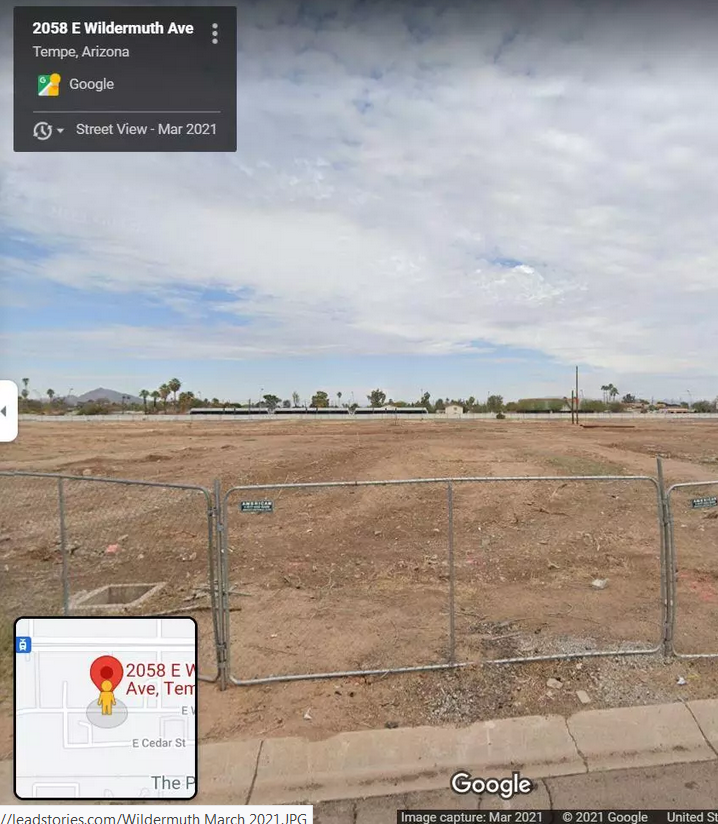 Lead Stories reviewed Google Maps and records in the Maricopa County Recorder's office, finding that while the lot at 2058 E Wildermuth Avenue in Tempe is currently listed as scraped bare and fenced with temporary construction barriers, there was a home on the property at least as recently as 2019. Neither photo tells what was on the site in the fall of 2020.