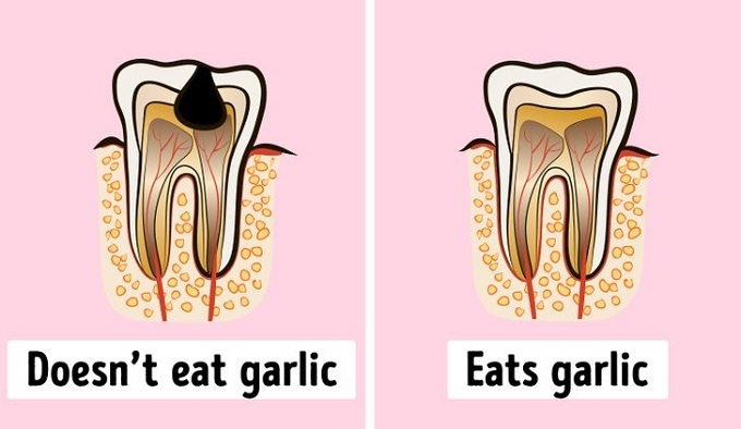 Do đặc tính kháng khuẩn và nấm, tỏi rất tốt cho khoang miệng. Nó tiêu diệt vi khuẩn có hại, chữa lành viêm nướu và giảm nguy cơ sâu răng.