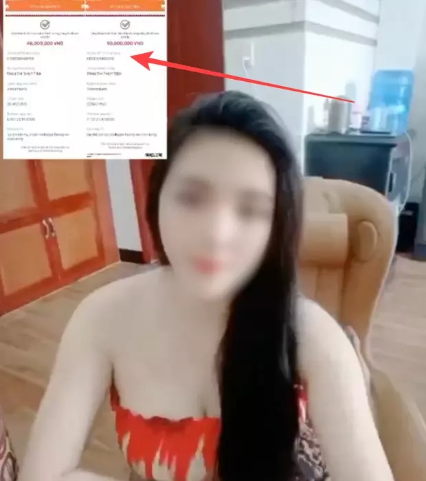 Trong video, cô chèn ảnh chụp màn hình được cho là hoá đơn đã chuyển khoản cho Thuỷ Tiên