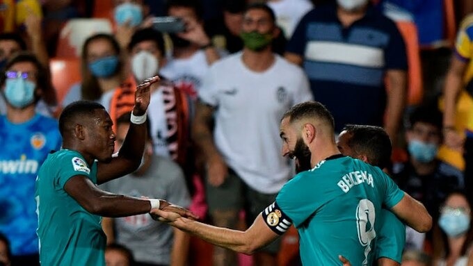 Hai bàn chóng vánh của Vinicius và Karim Benzema giúp Real thắng ngược Valencia 2-1 tối 19/9 để tiếp tục đứng đầu La Liga.